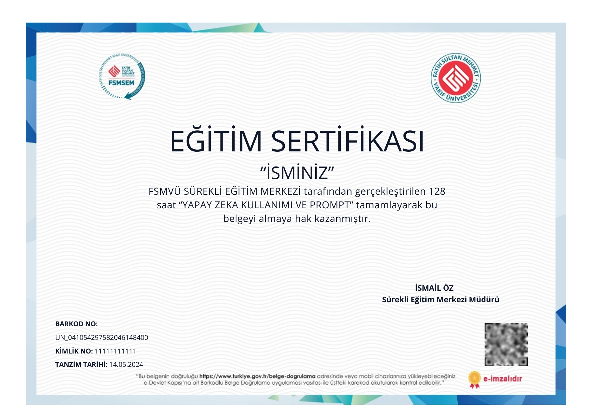 Eğitim sonunda yapılacak online sınavla başarılı olan katılımcılar, E-Devlet'te görüntülenebilir resmi sertifika almaya hak kazanır.
