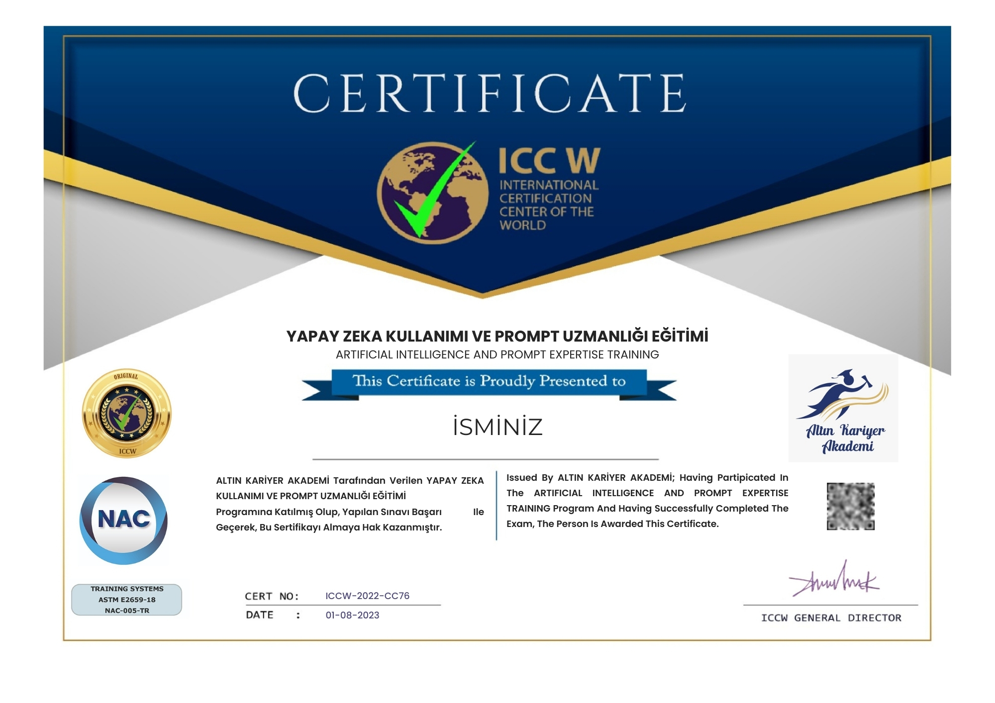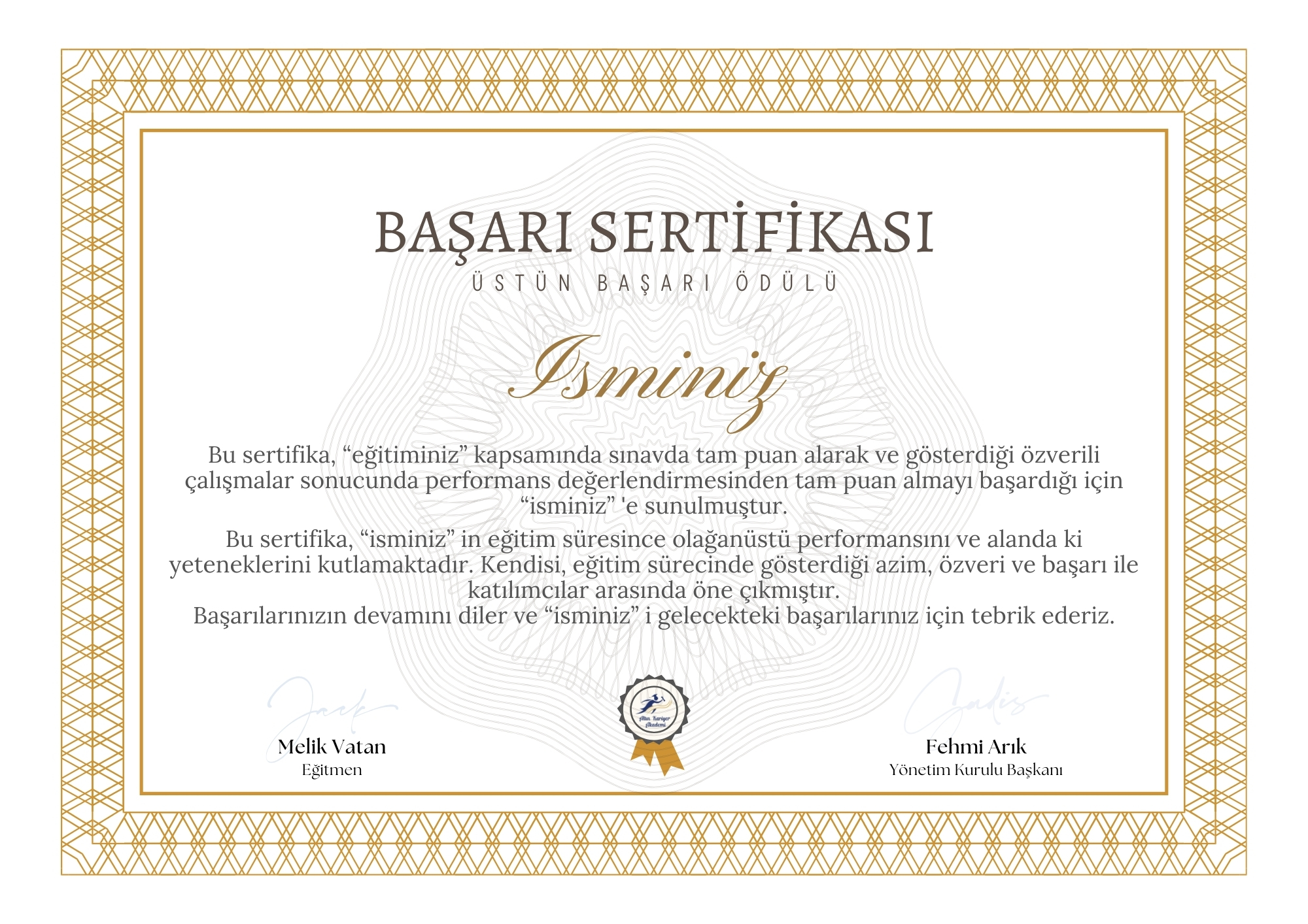 Bu eğitim ile devletle geçerliliği olan sertifikalara ulaşabilirsiniz. Eğitim sonunda yapacağınız sınavlar ve projeler ile uluslararası tanınırlığa sahip bir sertifika sahibi olacaksınız.